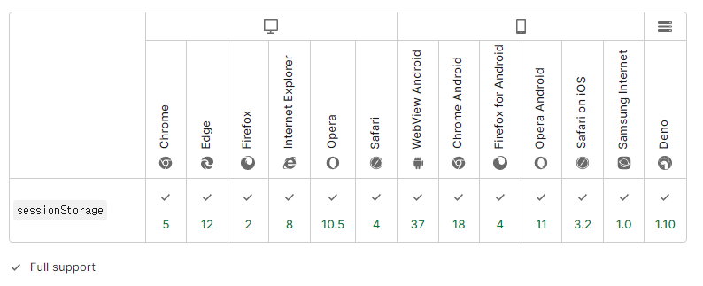 출처 : https://developer.mozilla.org/ko/docs/Web/API/Window/sessionStorage